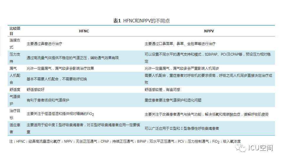 圖1 經(jīng)鼻高流量濕化氧療儀示意圖 人類開始氧氣治療的歷史可回溯到18世紀后葉,20世紀初即開始應用橡膠制作的鼻導管進行氧療[4]。1987年美國研發(fā)了最高流量可達20 L/min的氧療加溫濕化裝置MT-1000,應用于囊性肺纖維化等患者氧療促進下呼吸道分泌物排出。近10年來,HFNC進入快速發(fā)展和臨床廣泛應用階段,國際主流HFNC裝置都是采用無創(chuàng)呼吸機的工作原理:用空氧混合器進行空氧混合,吸入氧濃度(FiO2)為21%~100%,應用渦輪提供高流量的氣體,采用呼吸機應用的加溫加濕器和管路加熱導絲對吸入氣體進行全程加溫加濕,并通過近患者端實時監(jiān)測溫度和氧濃度進行動態(tài)調(diào)控。另外,部分呼吸機廠家在有創(chuàng)和無創(chuàng)呼吸機上設置了HFNC功能,進一步拓展了呼吸機的臨床適用范圍,這也是未來的發(fā)展方向[5]。國內(nèi)HFNC的歷史僅有5年左右,在前期仿制國外HFNC的基礎上進行創(chuàng)新,在很短的時間內(nèi)形成自己的特色,如可自動調(diào)節(jié)和精確調(diào)控FiO2(21%~100%)、溫度控制精度可達到±1 ℃、呼吸管路采用免消毒氣路技術(shù)等。 二、HFNC設備的結(jié)構(gòu)特點及其工作原理 (一)HFNC的結(jié)構(gòu)特點 HFNC按其結(jié)構(gòu)特點可分為3大組成部分。 (1)氣體的空氧混合部分:其作用是將空氣和氧氣按預設氧濃度在渦輪前進行混合。氧濃度調(diào)控有2種方法,一種是通過浮標式氧氣流量計調(diào)節(jié)氧氣流量實現(xiàn)對氧濃度的控制,該方法無法預設氧濃度,只能通過調(diào)節(jié)氧氣流量產(chǎn)生實際的FiO2;一種是微型比例閥和超聲氧濃度傳感器實現(xiàn)對氧濃度的控制,可以預設FiO2。 (2)氣體的加溫濕化部分:其作用是將空氧混合后的氣體進行加溫濕化。 (3)氣體的輸送部分:其作用是保證已完成加溫濕化的空氧混合氣體以恒溫恒濕恒流速的方式輸送至患者端。高流量濕化氧療儀與患者連接部分為高流量鼻塞,高流量鼻塞的尖端呈斜面型的出口,質(zhì)地柔軟,用一個具有彈性可調(diào)節(jié)的過耳頭帶固定于患者面部。 (二)HFNC的生理學機制 HFNC通過輸送高流速氣體的方式,可以維持一定水平的PEEP,維持肺泡開放,有利于呼氣末肺泡復張和氣血交換。Corley等[6]通過使用電阻抗斷層掃描(EIT)測量心臟手術(shù)后肺容積的生理學研究證明了HFNC可促進呼氣末肺容積增加,表明HFNC通過高流量產(chǎn)生的PEEP作用促進肺復張。有研究結(jié)果顯示,HFNC流量每增加10 L/min,患者咽腔PEEP就增加0.5~1 cmH2O(1 cmH2O=0.098 kPa)[7]。流量增加到60 L/min時,閉口的女性受試者咽腔PEEP可達到8.7 cmH2O左右,男性為5.4 cmH2O;張口呼吸情況下女性為3.1 cmH2O,男性為2.6 cmH2O左右。但值得注意的是,由于HFNC允許大量漏氣,患者若張口呼吸必然導致PEEP水平不穩(wěn)定[6]。 HFNC通過為患者提供恒定的、可調(diào)節(jié)的高流速空氧混合氣體,沖刷患者呼氣末殘留在鼻腔、口腔及咽部的解剖無效腔的氣體,可明顯減少患者下一次吸氣時吸入的CO2的含量[8]。M?ller等[9]通過81 mKr氣體測定HFNC對10名健康人鼻咽部和3例氣管切開患者CO2的清除率,發(fā)現(xiàn)CO2清除率和HFNC的氣體流速和佩戴時間直接相關。 HFNC主要關注于提供相對精確的恒溫和恒濕的高流量氧療,因而能夠更符合人體生理情況下呼吸道的氣體溫度及濕度,降低醫(yī)用干冷氣體對上下呼吸道黏液纖毛系統(tǒng)功能和黏膜的影響[10]。與普通氧療相比,使用HFNC可以明顯降低患者鼻、口、咽喉的干燥評分,有助于稀釋痰液和排痰,修復和維持人呼吸道上皮細胞和纖毛的結(jié)構(gòu)和功能,提高患者的舒適度,降低下呼吸道感染的發(fā)生幾率[6,11] 鼻咽腔通過提供較大的表面積對吸入氣體進行濕化和溫化,但同時吸入氣體之間的摩擦會對氣流產(chǎn)生明顯的阻力[12]。HFNC可以提供滿足患者吸氣流速需求、恒溫恒濕的高流量氣體,患者在吸氣時不需要用力吸氣也不需要對吸入氣體進行加溫加濕,這樣不僅降低吸氣阻力,同時避免患者對吸入氣體進行溫化濕化所需的代謝消耗,減少患者的呼吸做功[13,14]。而且與常規(guī)氧療輸出的低流量氧氣方式相比,HFNC能提供符合或超過患者所需的吸氣峰流速,減少了吸氣時空氣的稀釋作用,使得吸入氧氣的濃度不會受到患者的呼吸頻率、吸氣流速、呼吸形態(tài)等因素的影響,為患者提供精確穩(wěn)定的吸氧濃度,有利于改善患者氧合[6]。患者低氧狀態(tài)得到改善,呼吸更舒適,自主用力呼吸減弱,加之PEEP作用,呼吸功會隨之降低[15]。 三、HFNC與NPPV的異同點 HFNC和NPPV在治療原理上存在許多相似之處。從工作原理上看,都是電動渦輪機驅(qū)動形成高速氣流,通過電磁閥實現(xiàn)流量可控,氣流均可加溫加濕,都是傳統(tǒng)意義上的正壓通氣,能夠維持一定水平的PEEP,實現(xiàn)氣道開放,減少死腔,改善通氣,且允許開放氣道發(fā)生漏氣。HFNC和NPPV的不同點見表1[16,17]。 表1 HFNC和NPPV的不同點 四、HFNC臨床適應癥及禁忌癥 由于各研究結(jié)果間的差異[18,19,20],目前HFNC臨床應用的適應證和禁忌證尚無統(tǒng)一的標準。根據(jù)已發(fā)表的HFNC臨床應用研究證據(jù),目前認為HFNC主要應用于治療輕~中度Ⅰ型呼吸衰竭患者[21,22,23]。對于伴有嚴重通氣功能障礙的Ⅱ型呼吸衰竭患者,由于HFNC無明顯的通氣輔助功能,且臨床療效仍不明確,此時應慎重選擇HFNC。HFNC的應用時機、