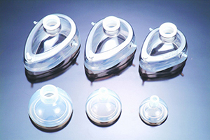 ③文丘里面罩:是可調(diào)節(jié)的高流量精確給氧裝置,可提供24%、28%、31%、35%、40%和60%濃度的氧氣,適合伴高碳酸血癥的低氧患者。使用時,首先設(shè)定患者的吸入氧體積分?jǐn)?shù),其次根據(jù)患者的呼吸情況決定面罩提供的氣體流量,最后調(diào)節(jié)氧源的給氧流量。