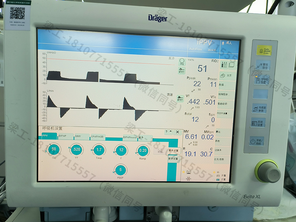 接好氧氣管和空氣管,然后開機到正常工作頁面