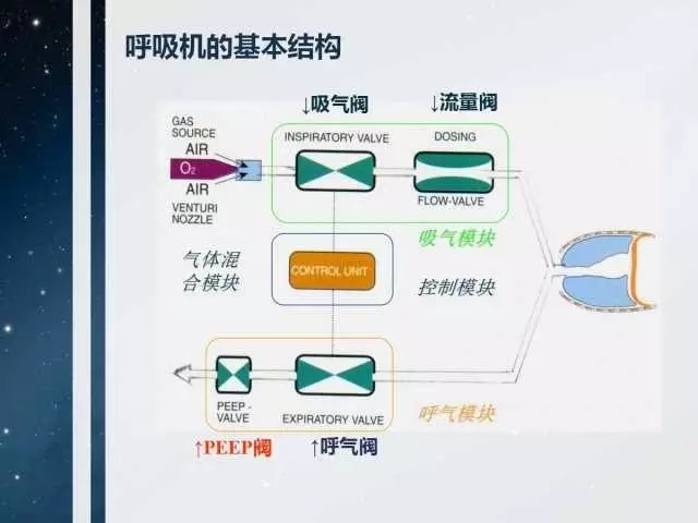 (1)提供輸送氣體的動力,替換人體呼吸肌的收縮與擴張。(2)提供包括呼吸頻率和吸呼比,以代替人體呼吸中樞神經(jīng)支配呼吸的功能。(3)能提供合適的潮氣量(V T)或分鐘通氣量(M V),以滿足呼吸功能和代謝功能的需要。(4)供給患者的氣體需要經(jīng)過加溫和濕化,代替人體鼻腔功能,并能供給高于大氣中所含的氧氣量,以提高吸入氧氣濃度,改善氧合。