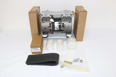 將吸氣模塊從呼吸機上拆下,發(fā)現(xiàn)空氣水汽分離器積水杯內有大量黑色粉塵顆粒物。再將空氣管從呼吸機上擰下來,連接吊塔空氣接口讓空氣氣排出,有大量的黑色粉塵顆粒物伴隨著空氣噴出。進一步,拆下空氣比例電磁閥也發(fā)現(xiàn)有黑色粉塵顆粒。