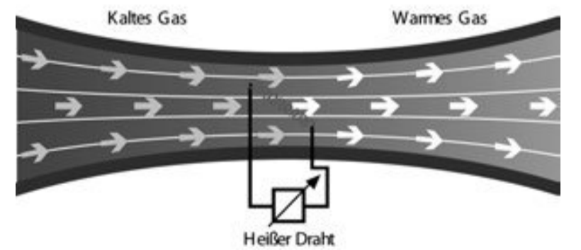 熱絲式流量傳感器式通過氣體流過時(shí)熱絲式的溫度變化量轉(zhuǎn)換為流量進(jìn)行檢測,熱量控制系統(tǒng)增加電流保持熱絲恒定溫度,氣體流速與電流產(chǎn)生量成比例,流量和電流是非線性關(guān)系;線性化的實(shí)現(xiàn)通過微處理器及軟件進(jìn)行,以便產(chǎn)生可重復(fù)性流速的分布。熱絲式電橋的一段,流量變化時(shí)熱絲的溫度、阻抗和電流變化,橋路不平衡,輸出電壓變化換算出流量。