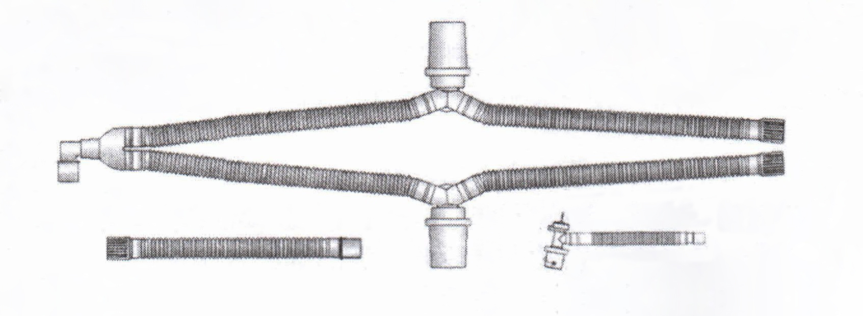 適用范圍: 搭配有創(chuàng)呼吸機使用,適用于麻醉機、呼吸機接口與供氧面罩的管路連接,作為麻醉氣體、氧氣進入人體內(nèi)的通道。 1、結(jié)構(gòu)組成 一次性使用麻醉機和呼吸機用呼吸管路套組包括單管路型和雙管路型,由波紋管、接頭(直型、Y型、L型、T型)、轉(zhuǎn)換接頭、集水杯(選配)、壓力管(選配)、延長管(選配)、單向閥(選配)和儲氣囊(選配)組成。以無菌形式提供,經(jīng)環(huán)氧乙烷滅菌,一次性使用。